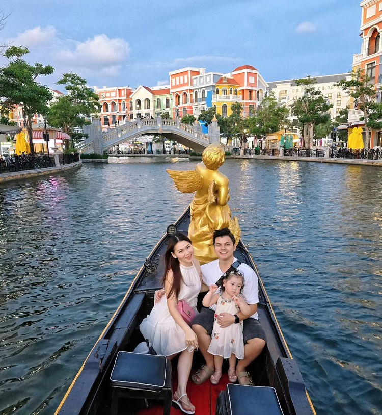 Cho các bé đi chèo thuyền Venice trên dòng kênh đào.