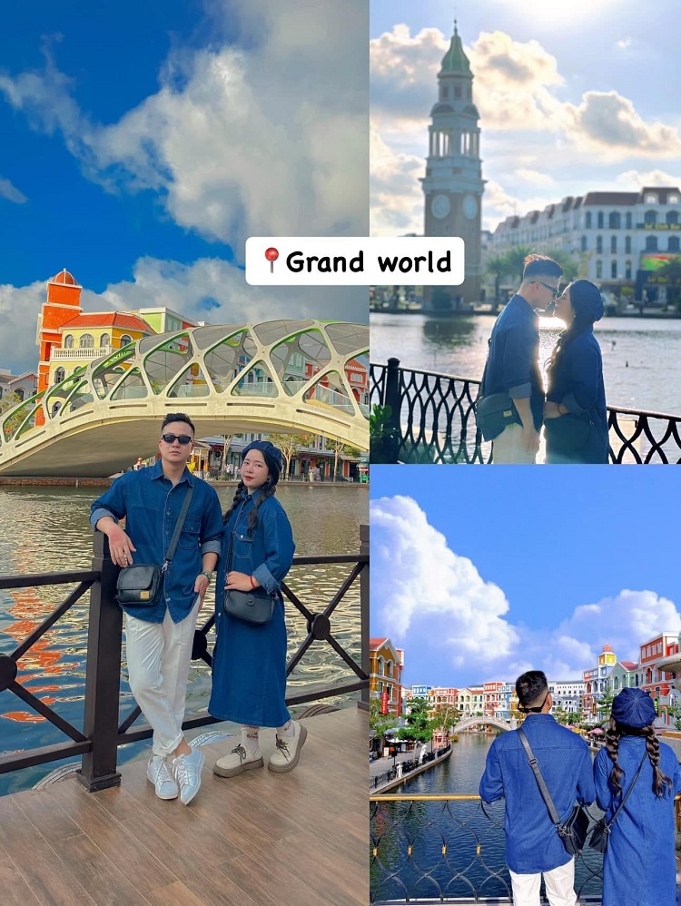 Grand World là “thành phố không ngủ” quần thể giải trí, mua sắm hoạt động 24/7 có kiến trúc được lấy từ cảm hứng các thành phố của Châu Âu. Đến với Grand World bạn có thể trải nghiệm đi thuyền trên sông xem show diễn "Sắc màu Venice" hoặc "Tinh hoa Việt Nam", chụp ảnh tại nhà tre khổng lồ. Grand World phù hợp với những bạn thích không khí nhộn nhịp, sôi động và chụp ảnh phong cách Châu Âu.