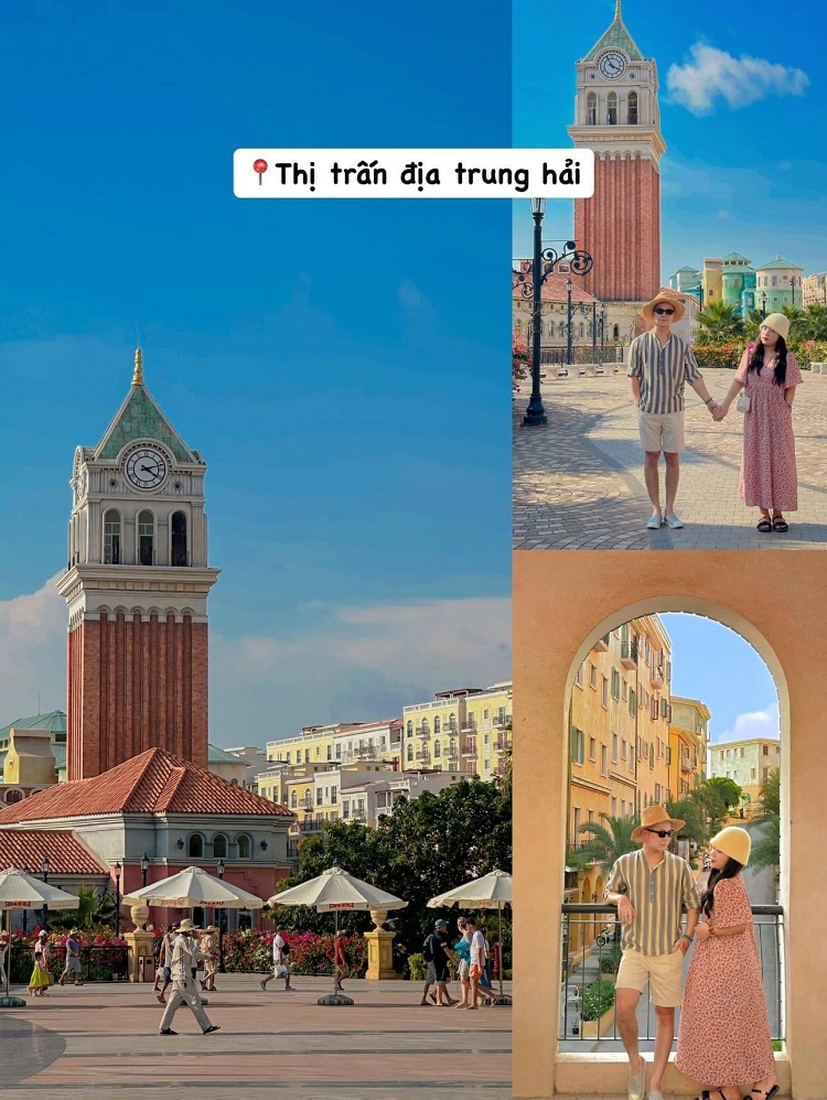 Sunset Town là những dãy phố đa sắc màu nằm thoai thoải bên bờ biển phía Nam đảo. Ghé thăm địa điểm này bạn có thể check-in với tháp chuông St. Mark's Campanile, tàn tích Amalfi, các bức tường tranh vẽ 3D và ngắm nhìn cáp treo hòn Thơm từ xa. Đây là địa điểm phù hợp với những tín đồ thời trang, đam mê nhiếp ảnh phong cách cổ điển phương Tây.
